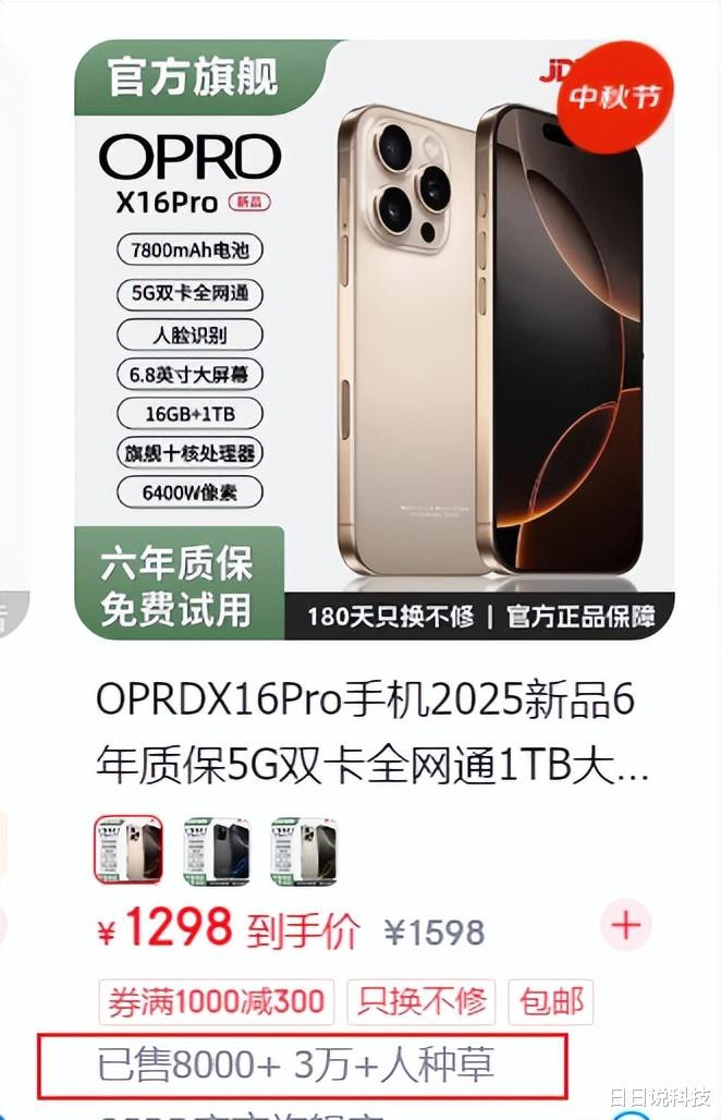 大家好,今天我发现一款非常有趣的手机,它是OP手机,看起来像OPPO,不过它全称是OPRD,推出了一款X16 Pro型号机型。光听名字就挺唬人,在某东看到它,销量显示八千多台,算不上爆款,但也不至于没人买,我想怎么又那么多人买呢?更关键的是,这手机的配置单一眼看上去非常“猛”,但细品之后,却有点像一个打着“性价比”旗号的谜题。